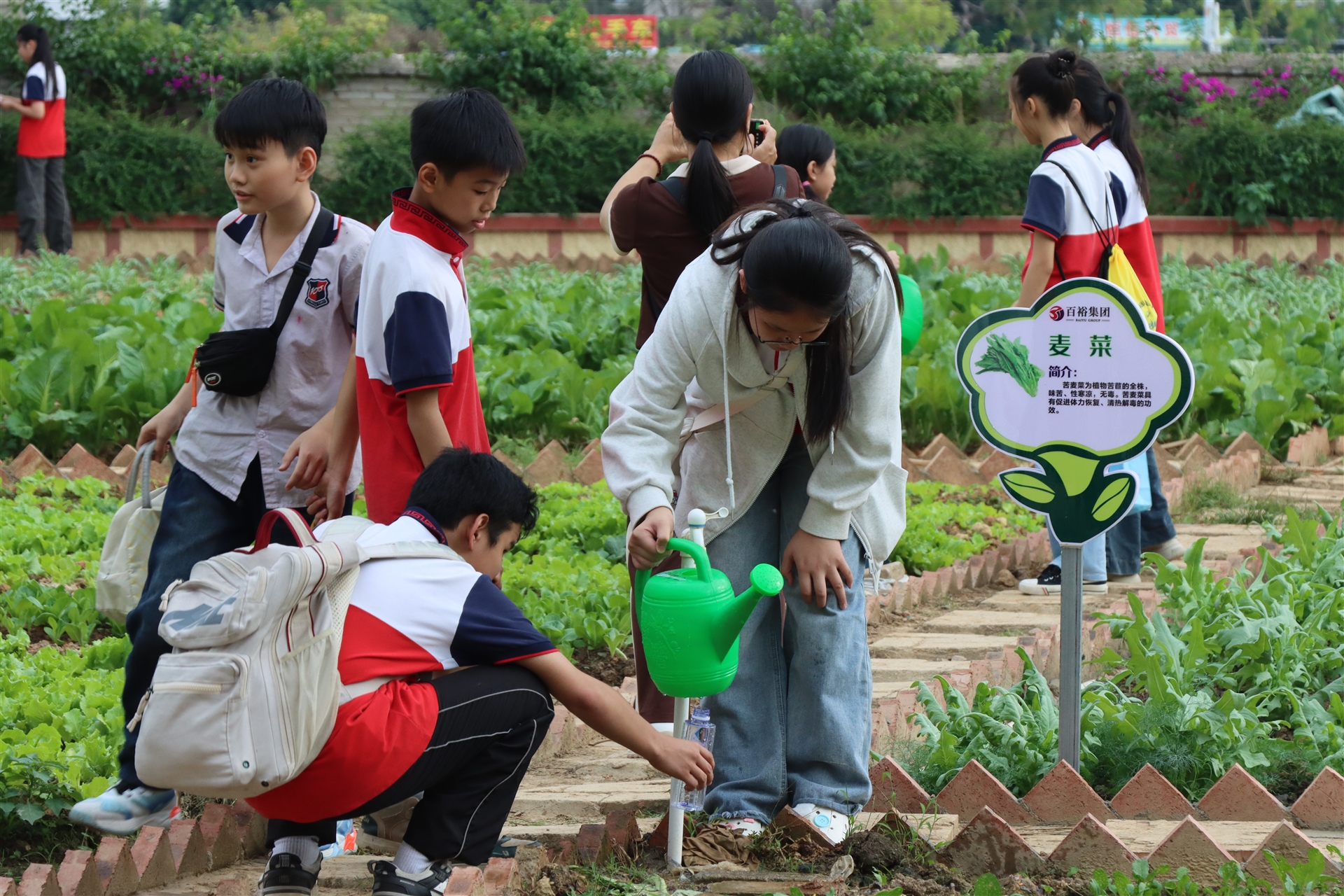 跟隨工作人員的步伐,孩子們來到農(nóng)耕園里,在這里他們將體驗(yàn)應(yīng)季果蔬農(nóng)耕生產(chǎn)活動(dòng)。孩子們認(rèn)真聆聽著工作人員介紹農(nóng)耕工具和瓜果蔬菜的外貌特征以及種植方法,通過親自體驗(yàn)翻地、撒種、施肥等農(nóng)事活動(dòng),不僅提高了孩子的動(dòng)手實(shí)踐能力,鍛煉了身體,也更直觀、更深入地了解了傳統(tǒng)農(nóng)耕文化,深刻體會(huì)到了農(nóng)耕種植的不易。