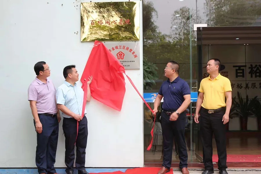 百裕集團(tuán)河池分公司是河池市委市政府招商引資的服裝生產(chǎn)企業(yè),也是金城江區(qū)重點(diǎn)企業(yè),主營(yíng)服裝生產(chǎn)加工業(yè)務(wù),公司現(xiàn)有員工149人,其中,來(lái)自貧困家庭員工8人。2020年疫情期間,已落實(shí)發(fā)放公司國(guó)家階段性減免企業(yè)職工基本養(yǎng)老、工傷、失業(yè)三項(xiàng)社會(huì)保險(xiǎn)單位部分補(bǔ)貼13.83萬(wàn)元和企業(yè)一次性防疫補(bǔ)貼1.2萬(wàn)元。此前,公司已經(jīng)區(qū)人社部門(mén)認(rèn)定為金城江區(qū)就業(yè)扶貧車(chē)間。今年的就業(yè)扶貧車(chē)間吸納貧困勞動(dòng)力獎(jiǎng)補(bǔ)標(biāo)準(zhǔn)已提高至2000元/人。按照自治區(qū)文件要求,對(duì)就業(yè)扶貧車(chē)間需授予牌匾。因此,公司舉行簡(jiǎn)樸的揭牌儀式,蘭軍城局長(zhǎng)親自為扶貧車(chē)間牌匾揭牌。