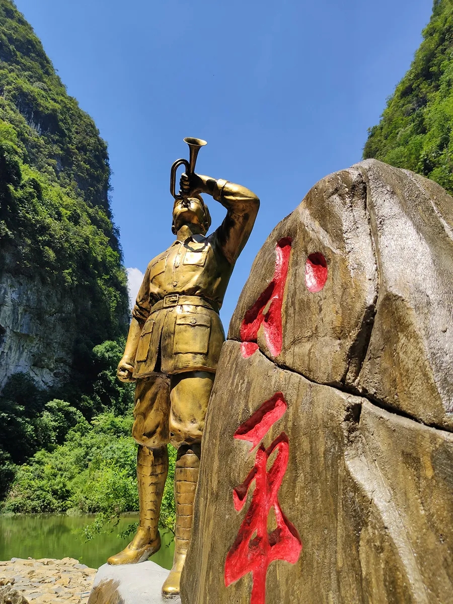 途中,黨員干部了解了鄧小平領(lǐng)導(dǎo)的紅八軍和左江革命委員會舉行反帝斗爭、張云逸同志在平馬勝利會師等龍州起義歷史故事,唱著紅歌,走在蜿蜒崎嶇的山路上,黨旗迎風(fēng)飄揚,黨員干部體驗了革命的艱辛和困苦,同時感受紅軍無所畏懼、勇往直前的使命和擔(dān)當(dāng)。