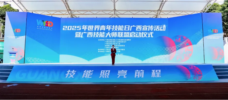 2025年世界青年技能日廣西宣傳活動分為自治區(qū)主會場和14個設(shè)區(qū)市分會場。自治區(qū)主會場由自治區(qū)人力資源社會保障廳聯(lián)合自治區(qū)工業(yè)和信息化廳、自治區(qū)總工會、共青團(tuán)廣西區(qū)委、廣西中華職業(yè)教育社共同主辦,自治區(qū)供銷社協(xié)辦,廣西經(jīng)貿(mào)職業(yè)技術(shù)學(xué)院承辦。自治區(qū)教育廳、自治區(qū)工業(yè)和信息化廳、自治區(qū)總工會、共青團(tuán)廣西區(qū)委和廣西中華職業(yè)教育社相關(guān)負(fù)責(zé)同志,以及全區(qū)各技工院校、企業(yè)、機(jī)構(gòu)等1000余人參加自治區(qū)主會場活動。百裕集團(tuán)作為企業(yè)代表受邀參與,以實際行動彰顯對技能人才培養(yǎng)的高度重視與責(zé)任擔(dān)當(dāng)。