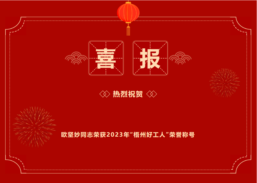 喜報(bào) | 百裕世紀(jì)(集團(tuán))歐堅(jiān)妙同志 榮獲2023年“梧州好工人”稱號