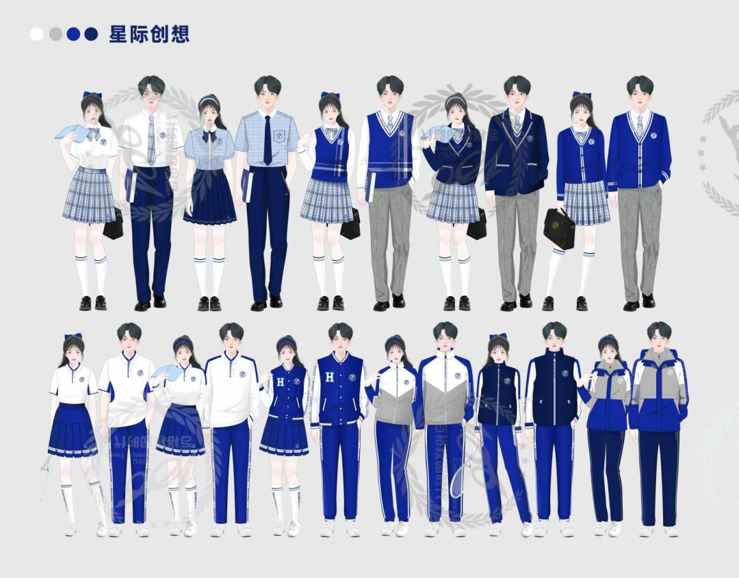 反光織帶和立體工藝的運用,將未來感和科技感融入細節(jié)當(dāng)中,讓學(xué)生裝更富科技感和精神力。