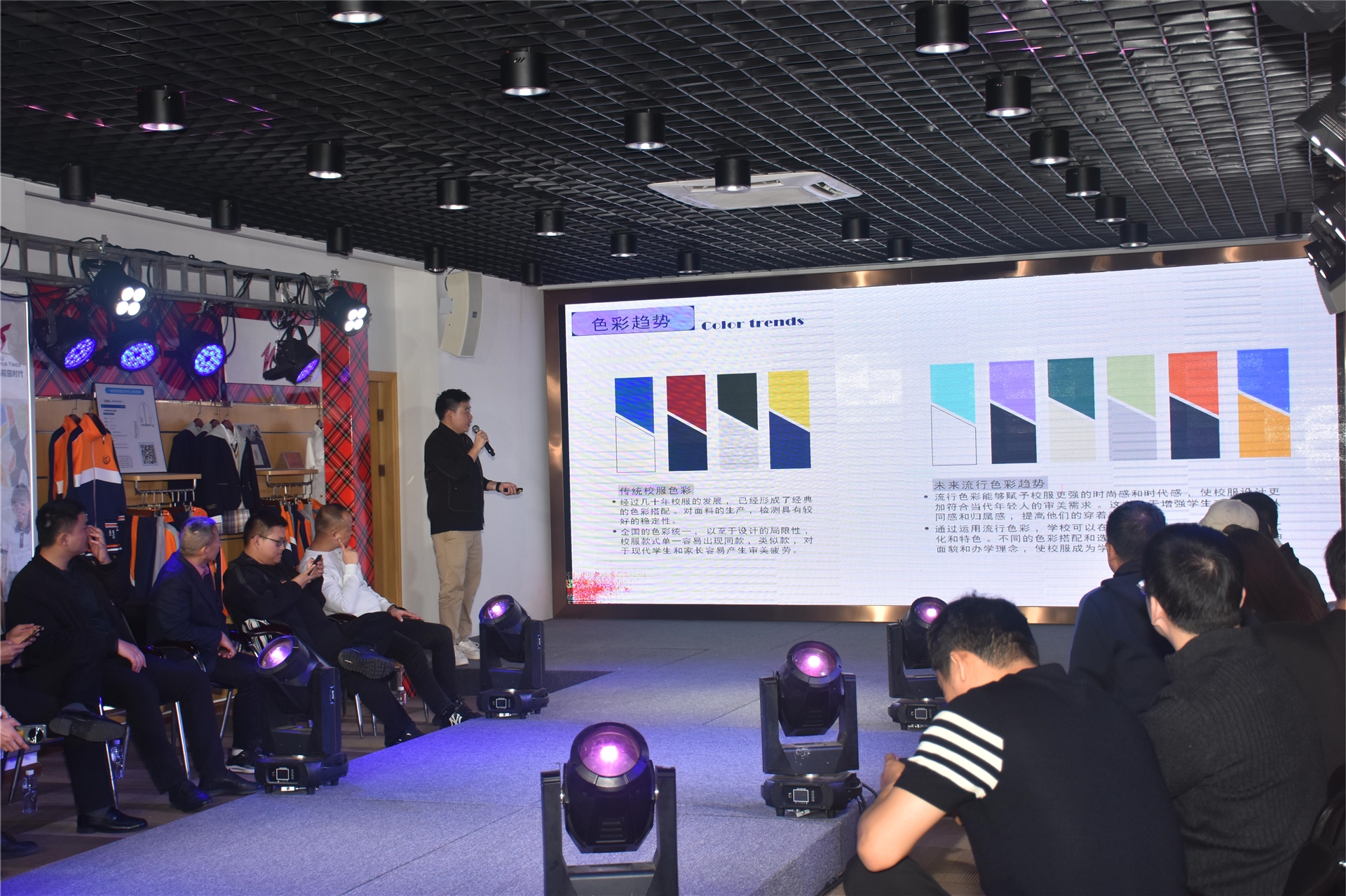 全國學(xué)生服飾南方研發(fā)中心致力于校服文化與功能的研究,款式設(shè)計(jì)等。以提升整個(gè)行業(yè)品牌推動(dòng)創(chuàng)新為使命,繼而引領(lǐng)校服產(chǎn)業(yè)的升級,打造中國校服的特色,推進(jìn)中國校服走向世界,弘揚(yáng)中華民族文化,鑄造民族品牌。研發(fā)中心副總經(jīng)理余朝陽從色彩趨勢、結(jié)構(gòu)趨勢、面料趨勢、科技輔料、文化運(yùn)用等方面分享本次新品校服的設(shè)計(jì)理念。