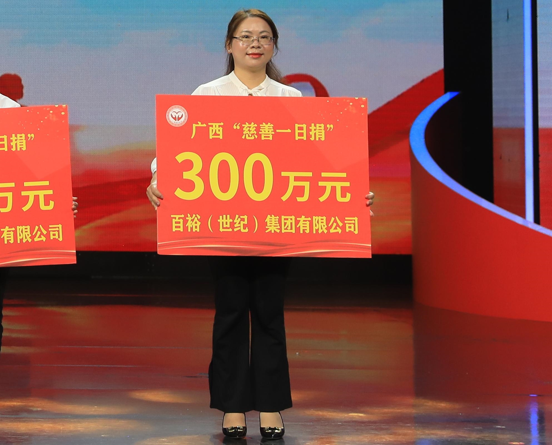 百裕世紀(jì)(集團(tuán))有限公司市場(chǎng)總監(jiān)曾凱蘭代表百裕集團(tuán)向廣西慈善總會(huì)舉牌捐款300萬(wàn)元,以實(shí)際行動(dòng)弘揚(yáng)中華民族傳統(tǒng)美德,弘揚(yáng)大愛(ài)無(wú)疆的奉獻(xiàn)精神,詮釋新時(shí)代民營(yíng)企業(yè)的使命擔(dān)當(dāng),為慈善事業(yè)貢獻(xiàn)自己的力量。